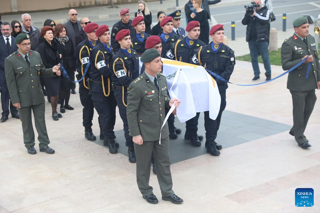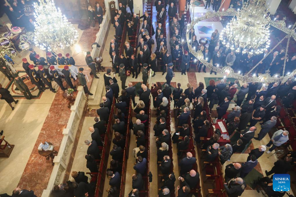 People attend the state funeral of former Cypriot President George Vassiliou in Nicosia, Cyprus, Jan. 17, 2026. Former Cypriot president George Vassiliou died overnight at the age of 94, his family said on Wednesday. Vassiliou served as president of the Republic of Cyprus from 1988 to 1993. He had been hospitalized since Jan. 6 due to a severe chest infection, the Cyprus Mail reported. (Photo by George Christophorou/Xinhua)