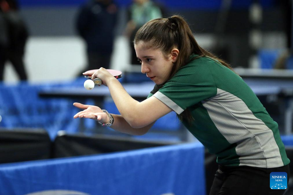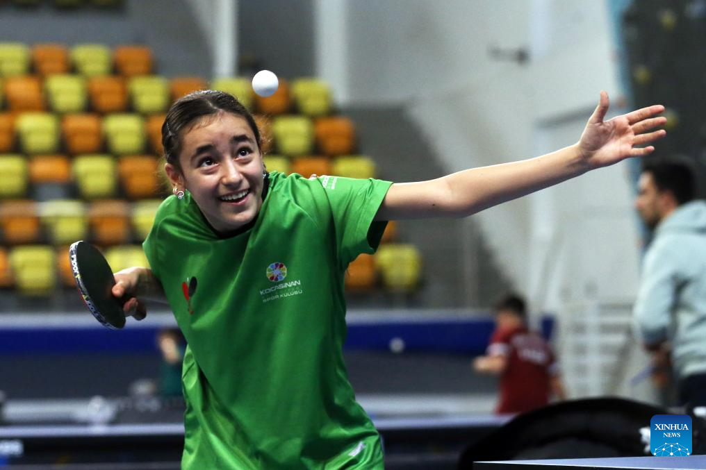 A participant practises in a training session of table tennis in Ankara, Türkiye, on Jan. 6, 2026. (Photo by Mustafa Kaya/Xinhua)