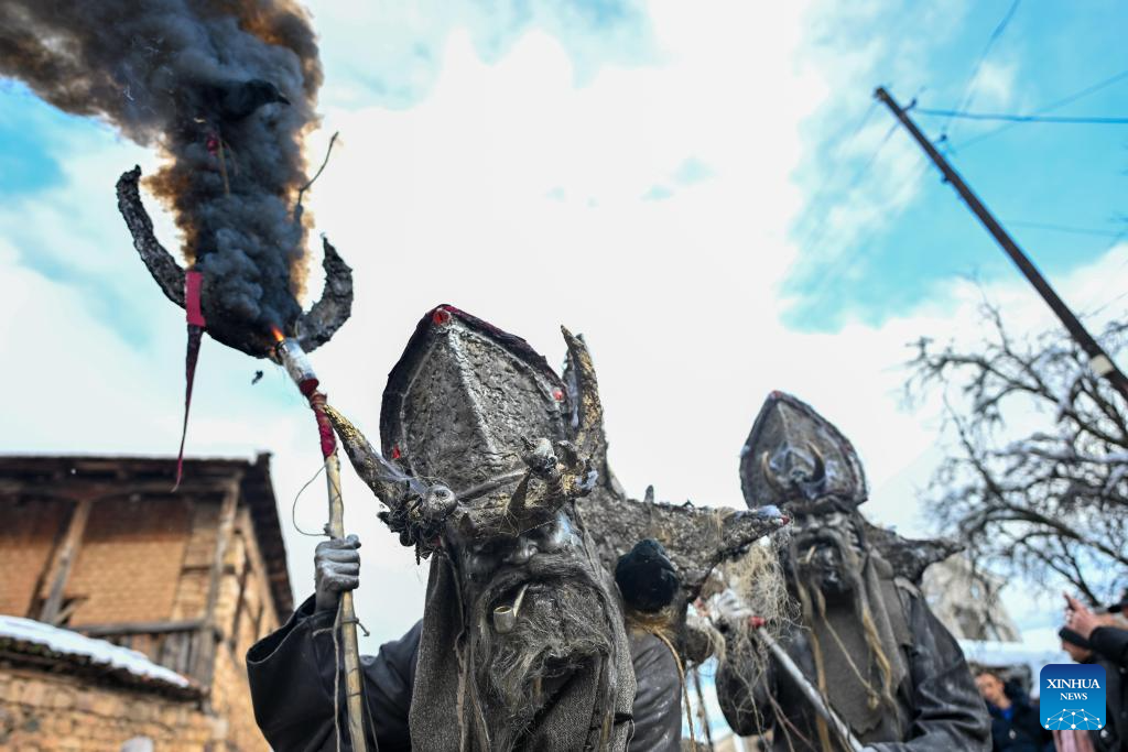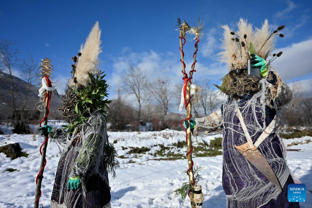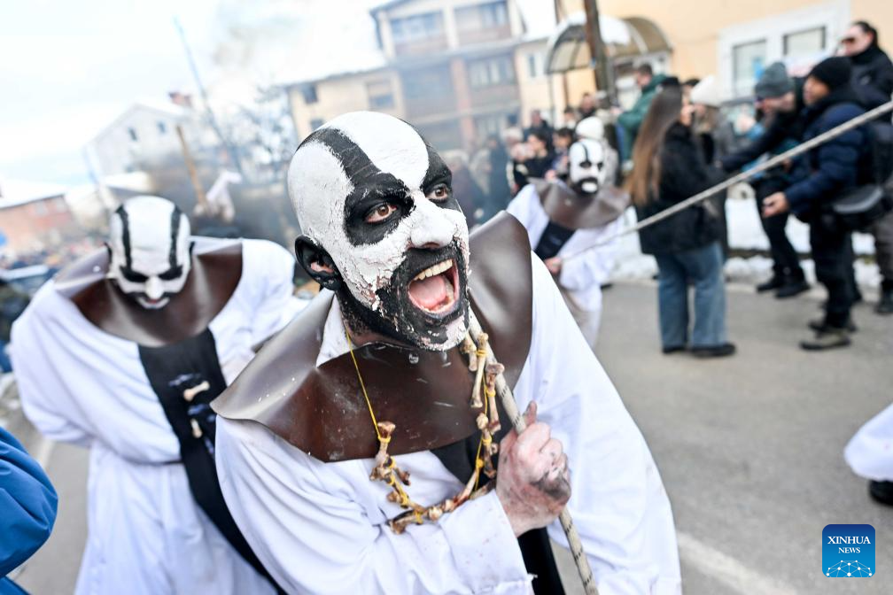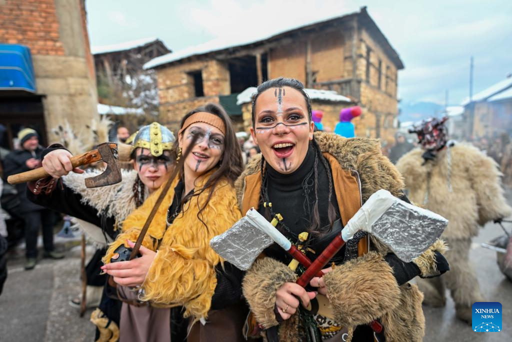 Revelers participate in a carnival celebration in the village of Vevcani, North Macedonia, Jan. 13, 2026. (Photo by Tomislav Georgiev/Xinhua)