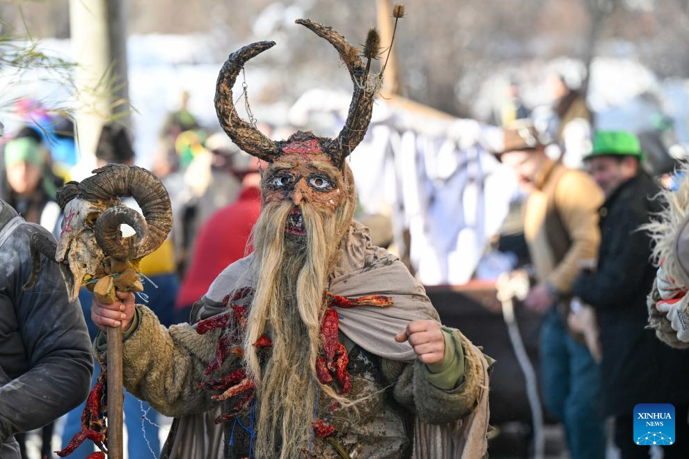 A revelers participates in a carnival celebration in the village of Vevcani, North Macedonia, Jan. 13, 2026. (Photo by Tomislav Georgiev/Xinhua)