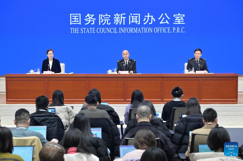 Wang Jun, deputy head of the General Administration of Customs (GAC), and Lyu Daliang, GAC spokesperson and director of the GAC's Department of Statistics and Analysis, attend a press conference held by the State Council Information Office (SCIO) on China's foreign trade in 2025 in Beijing, capital of China, Jan. 14, 2026. China's foreign trade expanded 3.8 percent year on year in yuan terms in 2025, official data showed Wednesday.