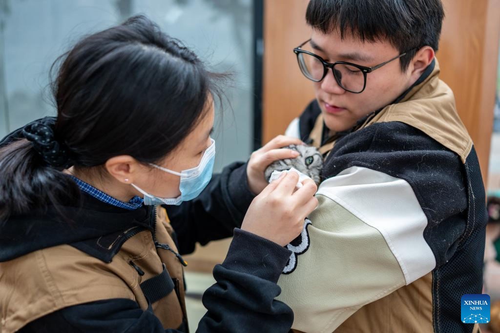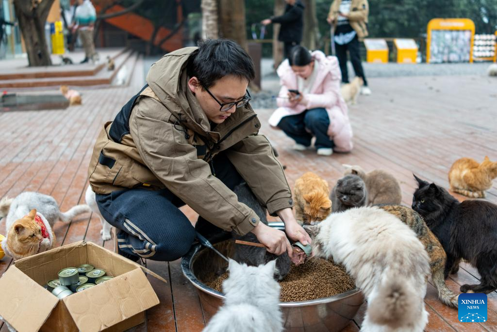 After receiving medical treatment and vaccinations, healthy cats roam freely in open areas to interact with visitors, while those with disabilities receive attention in a designated care zone. To ensure safety, the park is staffed by over 40 professionals, including veterinarians and caretakers, who conduct daily health checks and guide visitors on proper interaction. So far the sanctuary has rescued over 600 stray cats. Since opening to the public in early January, more than 50 cats have found their new homes. (Xinhua/Huang Wei)
