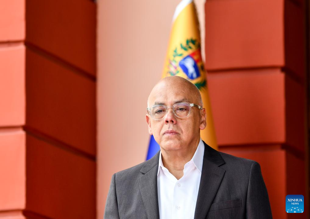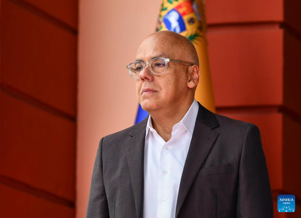 Venezuela's National Assembly President Jorge Rodriguez attends a press conference in Caracas, Venezuela, Jan. 14, 2026. (Xinhua/Ding Hongfa)
