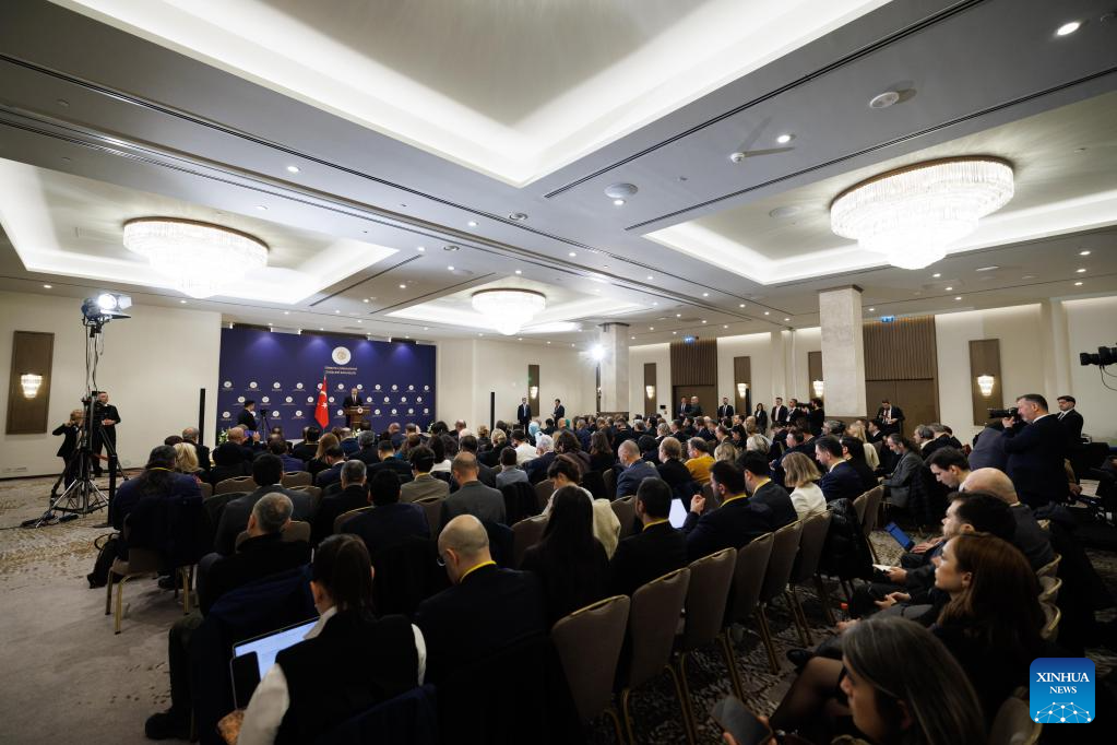 Turkish Foreign Minister Hakan Fidan speaks at a press briefing in Istanbul, Türkiye, Jan. 15, 2026. Türkiye opposes any military operation against Iran and supports efforts to preserve regional stability, Foreign Minister Hakan Fidan said at a press briefing on Thursday. (Ministry of Foreign Affairs of Türkiye/Handout via Xinhua)