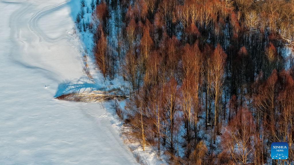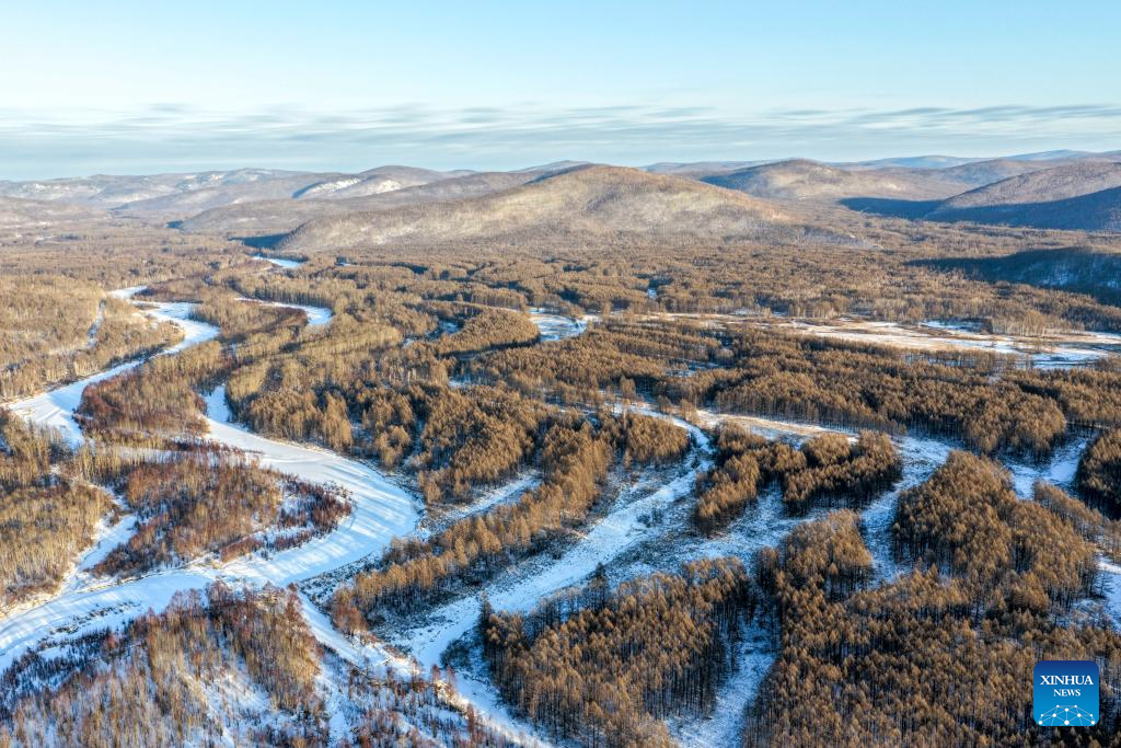 An aerial drone photo taken on Jan. 15, 2026 shows the scenery of the Genheyuan National Wetland Park in Genhe, north China's Inner Mongolia Autonomous Region. (Xinhua/Ma Jinrui)
