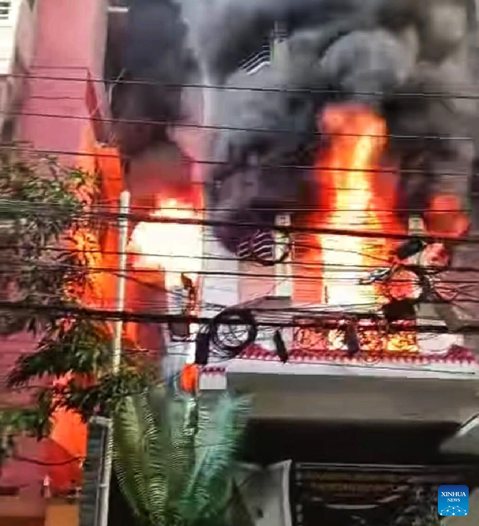 DHAKA, Jan. 16 (Xinhua) -- At least 6 people were killed and 13 others injured after a fierce fire tore through a residential building in the Bangladeshi capital, Dhaka, on Friday morning.