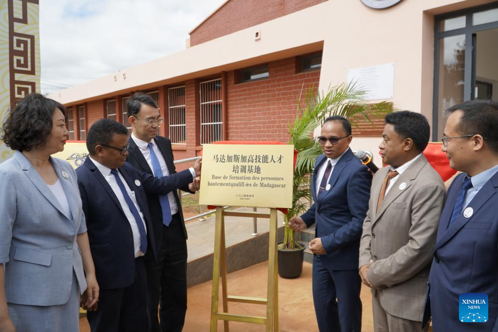 The Madagascar high-skill talent training base is inaugurated at the Madagascar Luban Workshop in Tananarive, Madagascar, on April 26, 2024. (Tianjin Vocational College of Mechanics and Electricity/Handout via Xinhua)