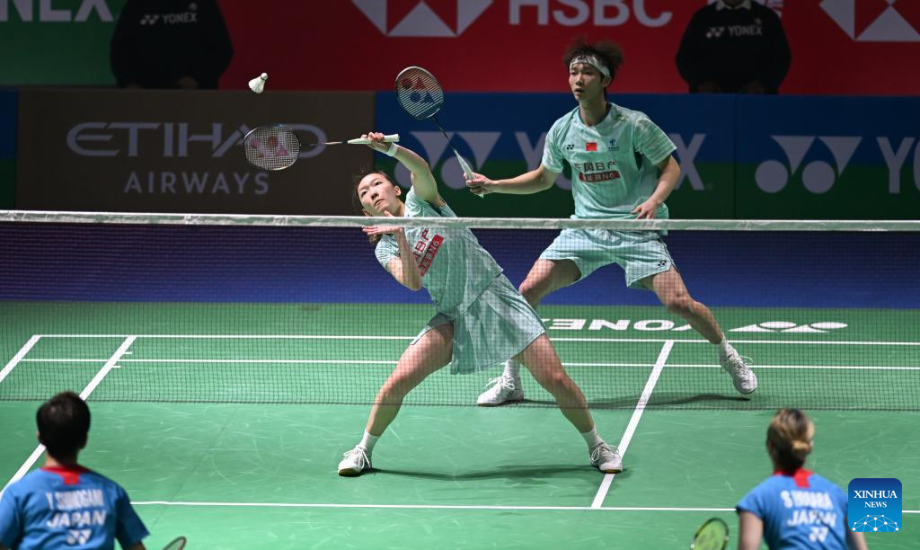 China's Wei Yaxin (L) /Jiang Zhenbang compete during the mixed doubles quarter final match against Japan's Shimogami Yuichi/Hobara Sayaka at the India Open 2026 in New Delhi, India, Jan. 16, 2026. (Xinhua/Javed Dar)