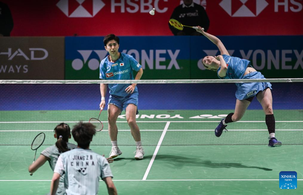 Japan's Shimogami Yuichi (L) /Hobara Sayaka compete during the mixed doubles quarter final match against China's Jiang Zhenbang/Wei Yaxin at the India Open 2026 in New Delhi, India, Jan. 16, 2026. (Xinhua/Javed Dar)