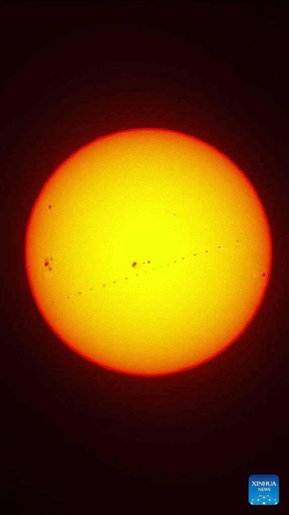A stacked composite photo taken on Jan. 16, 2026 in China's capital Beijing shows the Chinese space station passing in front of the Sun. (Xinhua/Xing Guangli)
