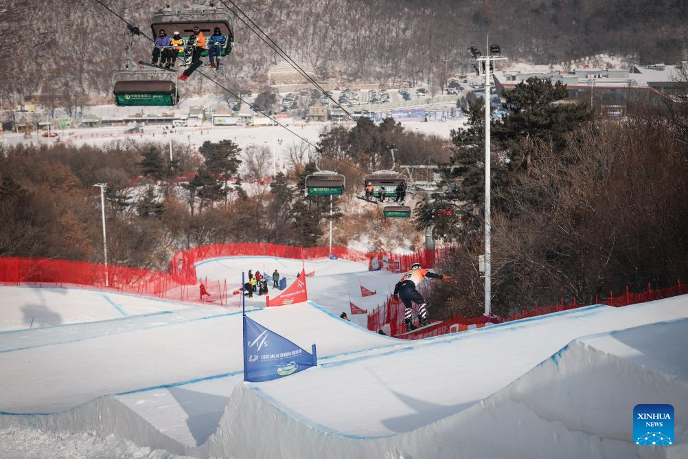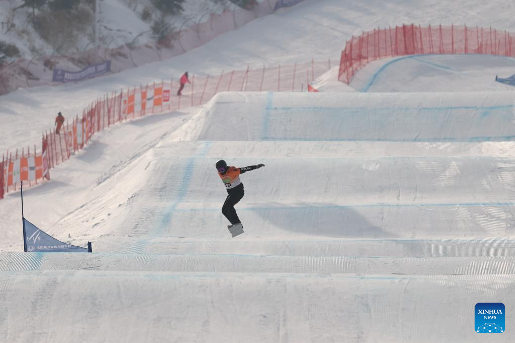 Gao Dali of China competes during the men's qualification of the FIS snowboard cross world cup 2026 at Shenyang Dongbeiya International Ski in Shenyang, northeast China's Liaoning Province, Jan. 16, 2026. (Xinhua/Pan Yulong)