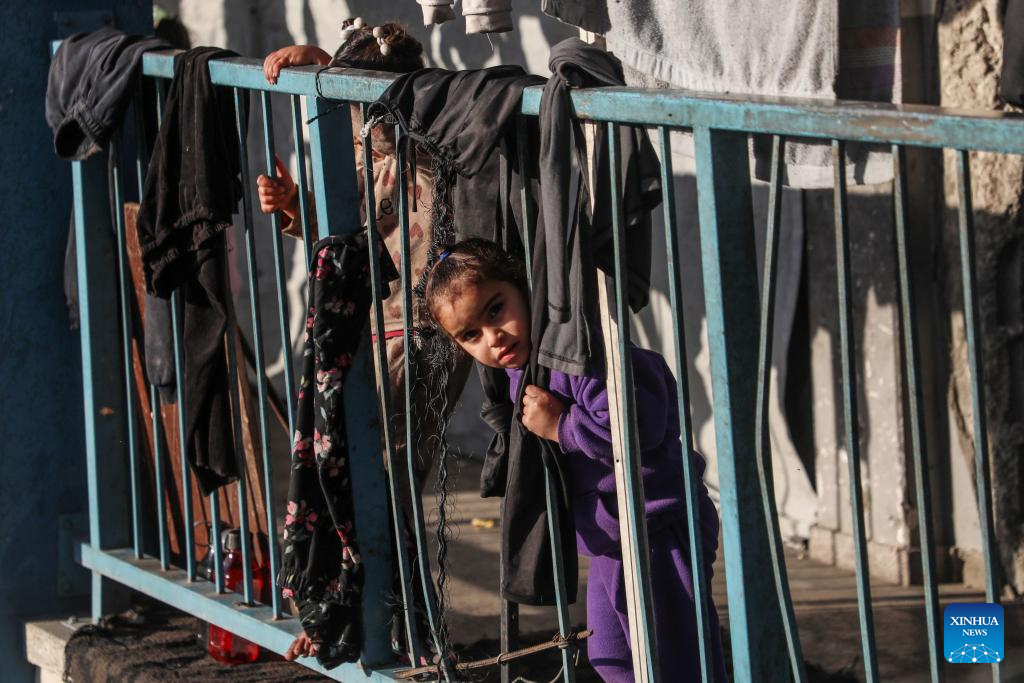 Photo taken on Jan. 15, 2026 shows children in a shelter in Gaza City. (Photo by Rizek Abdeljawad/Xinhua)