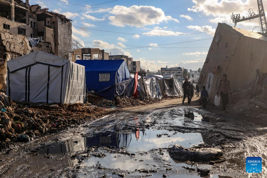 Photo taken on Jan. 15, 2026 shows tents housing displaced people in Gaza City. (Photo by Rizek Abdeljawad/Xinhua)