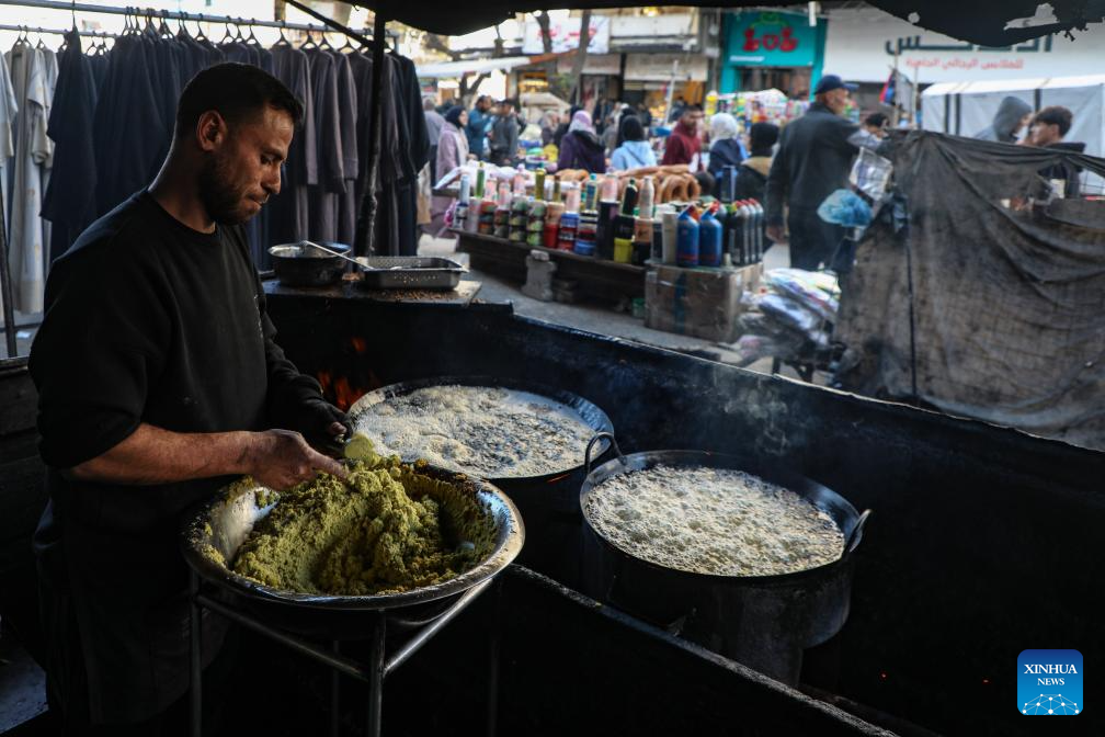 A vendor prepares food in a market in Gaza City, Jan. 15, 2026. (Photo by Rizek Abdeljawad/Xinhua)