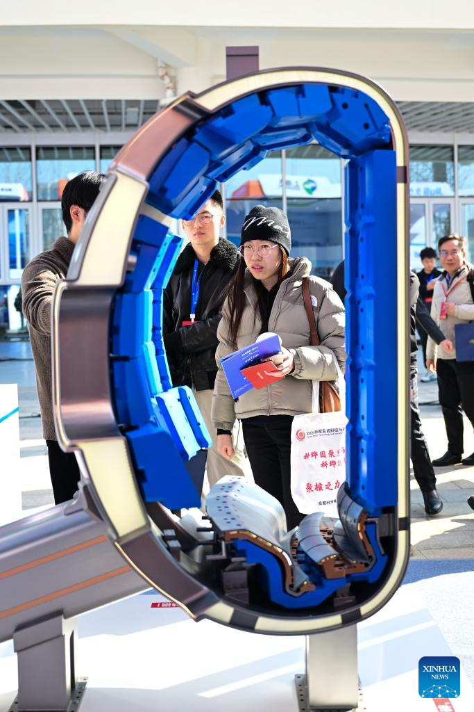 People view a model of the Experimental Advanced Superconducting Tokamak (EAST) during the Fusion Energy Technology and Industry Conference 2026 in Hefei, east China's Anhui Province, Jan. 16, 2026. The conference is held here from Jan. 16 to Jan. 17, which aims to build a collaborative and progressive innovation and industrial ecosystem for nuclear fusion energy. (Xinhua/Zhou Mu)