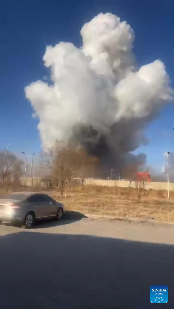 This photo taken with a mobile phone on Jan. 18, 2026 shows the site of an explosion at a factory in Baotou, north China's Inner Mongolia Autonomous Region. (Xinhua)
