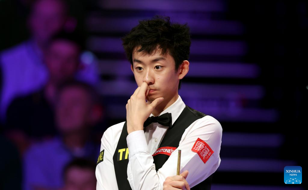Wu Yize of China reacts during the semifinal match against Kyren Wilson of England at the 2026 Snooker Masters in London, Britain, Jan. 17, 2026. (Xinhua/Li Ying)
