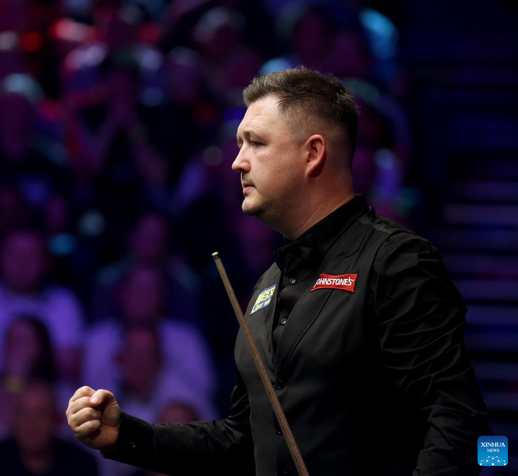 Kyren Wilson of England reacts during the semifinal match against Wu Yize of China at the 2026 Snooker Masters in London, Britain, Jan. 17, 2026. (Xinhua/Li Ying)