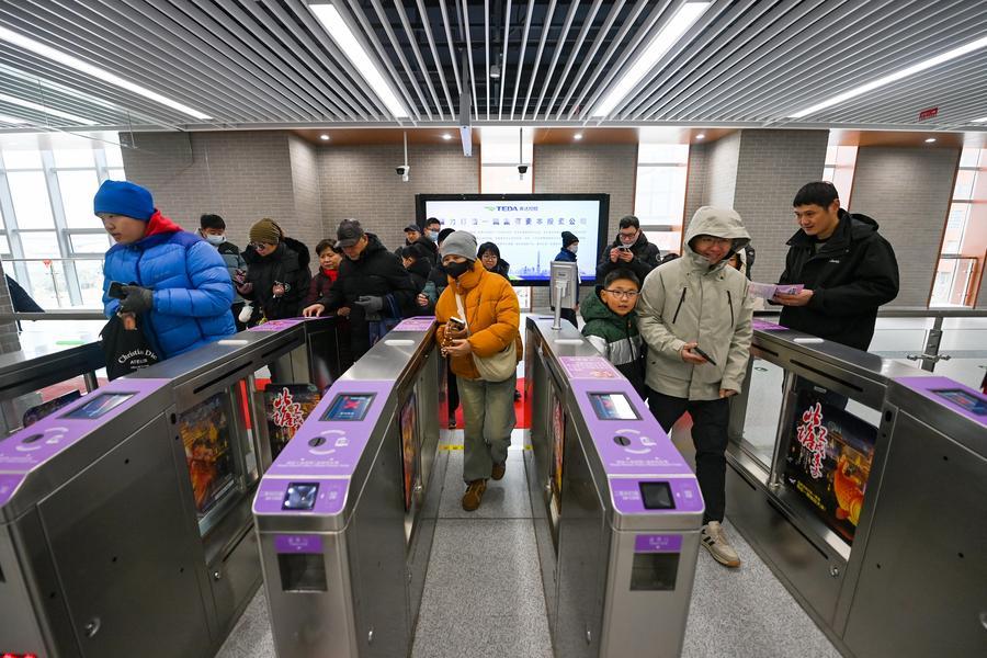 A child interacts with costumed performers at Beitang Station of Tianjin Rail Transit Line Z4 in north China's Tianjin, on Jan. 18, 2026. (Xinhua/Zhao Zishuo)A driver of Tianjin Rail Transit Line Z4 prepares before operation in north China's Tianjin, Jan. 18, 2026. (Xinhua/Zhao Zishuo)Passengers take photos on a train of Tianjin Rail Transit Line Z4 in north China's Tianjin, on Jan. 18, 2026. (Xinhua/Zhao Zishuo)■