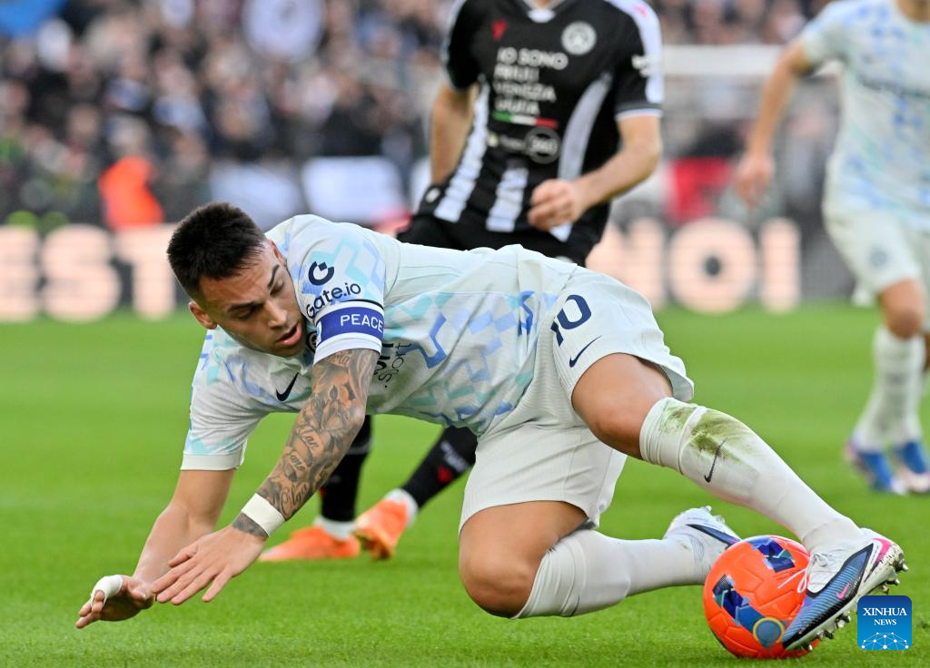 Inter Milan's Lautaro Martinez competes during a Serie A football match between Udinese and Inter Milan in Udine, Italy, Jan.17, 2026. (Photo by Diego Petrussi/Xinhua)