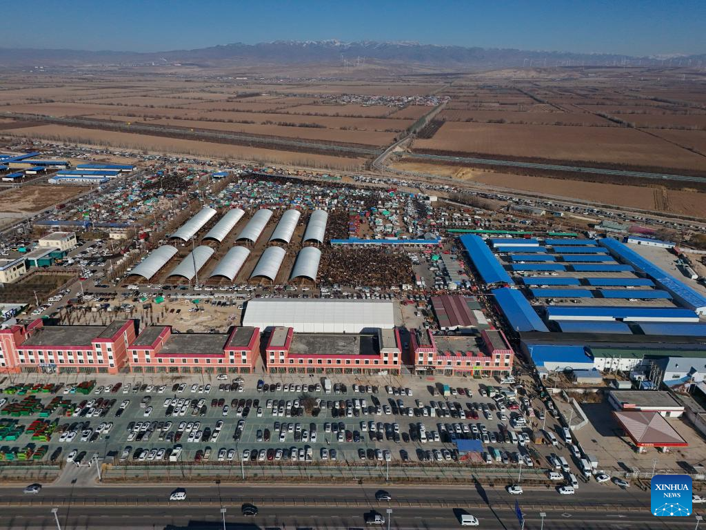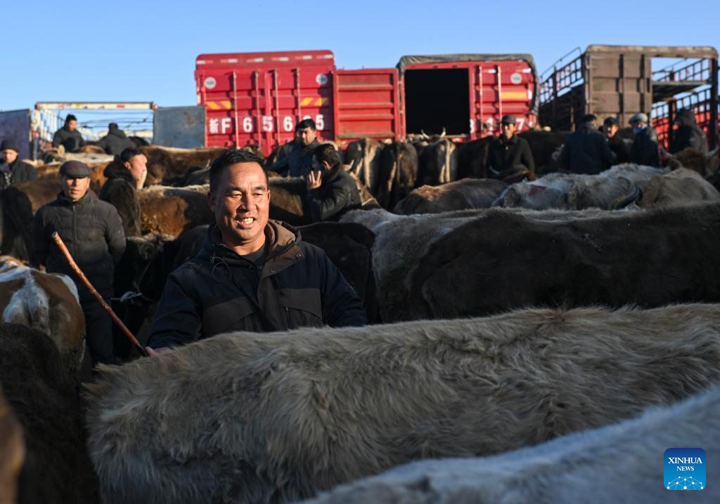 URUMQI, Jan. 18 (Xinhua) -- Huanggong Bazaar in Yining County of northwest China's Xinjiang Uygur Autonomous Region stirs even before dawn on trading days. Shrouded in winter darkness, trucks loaded with cattle, sheep and horses edge toward the gate at this bazaar, arriving in a sequence governed by the market rhythm that has changed little across generations.