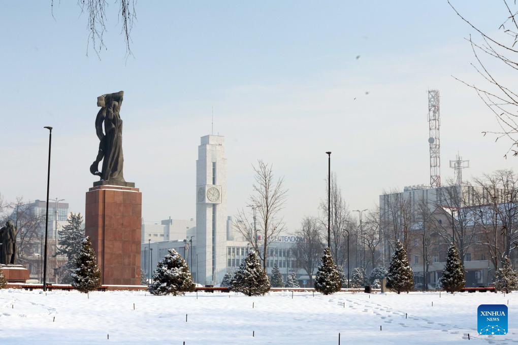 This photo taken on Jan. 18, 2026 shows a street view after snow in Bishkek, Kyrgyzstan. (Photo by Roman/Xinhua)