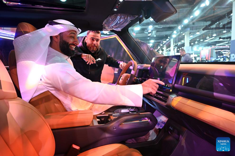A man sits inside a vehicle at the booth of a Chinese car brand during the Auto Show in Hawalli Governorate, Kuwait, Jan. 19, 2026. The Auto Show kicked off in Kuwait's Hawalli Governorate on Monday with the participation of more than 120 cars from around 30 car dealers showing 40 car brands. The event will last for 6 days from Jan. 19 to 24. (Photo by Asad/Xinhua)