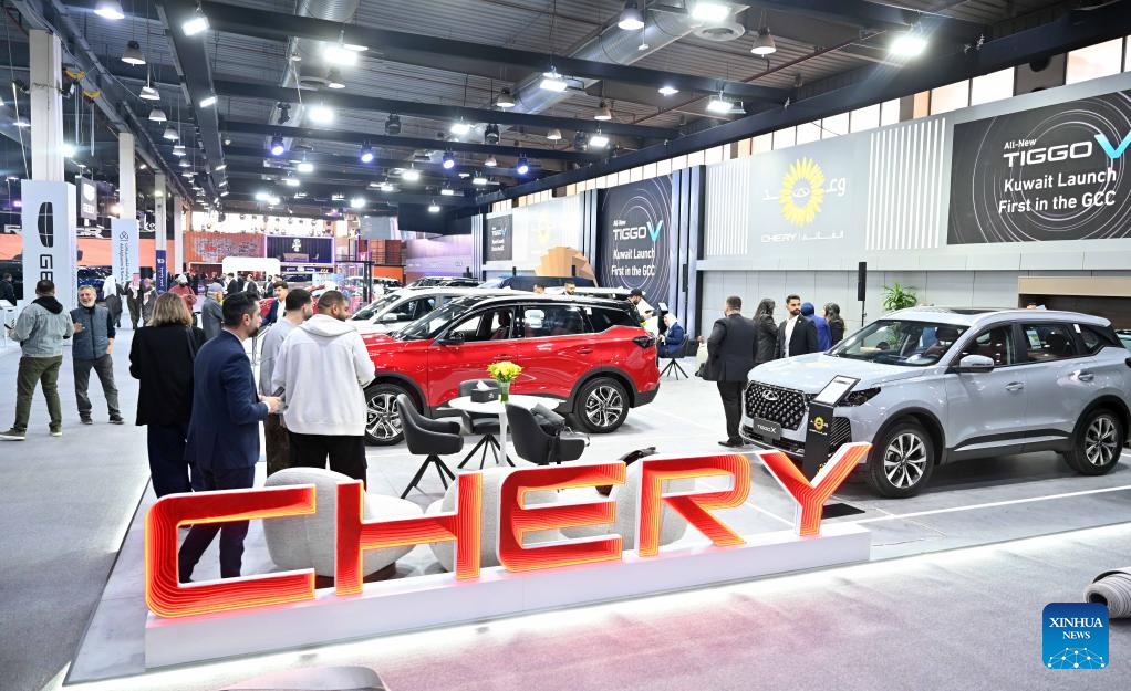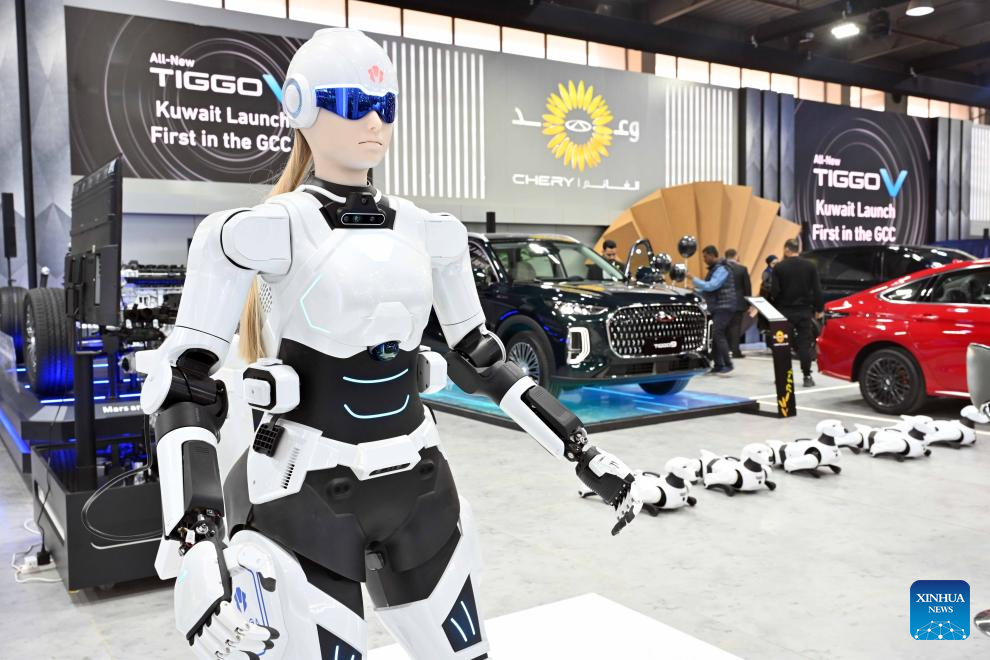 Photo taken on Jan. 19, 2026 shows a robot at the booth of Chery during the Auto Show in Hawalli Governorate, Kuwait. The Auto Show kicked off in Kuwait's Hawalli Governorate on Monday with the participation of more than 120 cars from around 30 car dealers showing 40 car brands. The event will last for 6 days from Jan. 19 to 24. (Photo by Asad/Xinhua)