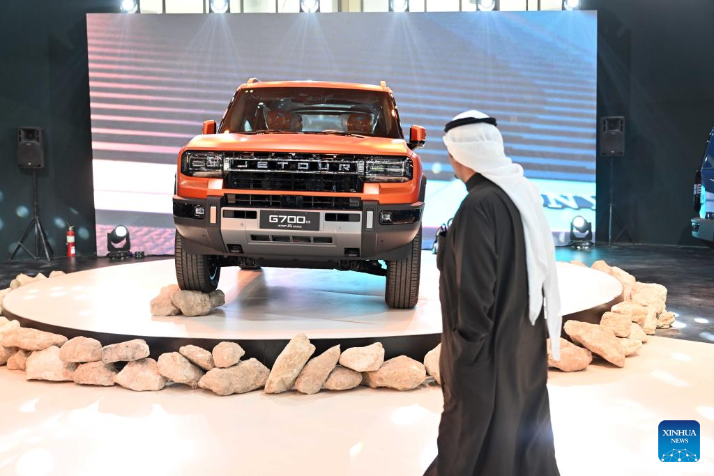 A man visits the booth of Chinese car brand Jetour G700 during the Auto Show in Hawalli Governorate, Kuwait, Jan. 19, 2026. The Auto Show kicked off in Kuwait's Hawalli Governorate on Monday with the participation of more than 120 cars from around 30 car dealers showing 40 car brands. The event will last for 6 days from Jan. 19 to 24. (Photo by Asad/Xinhua)