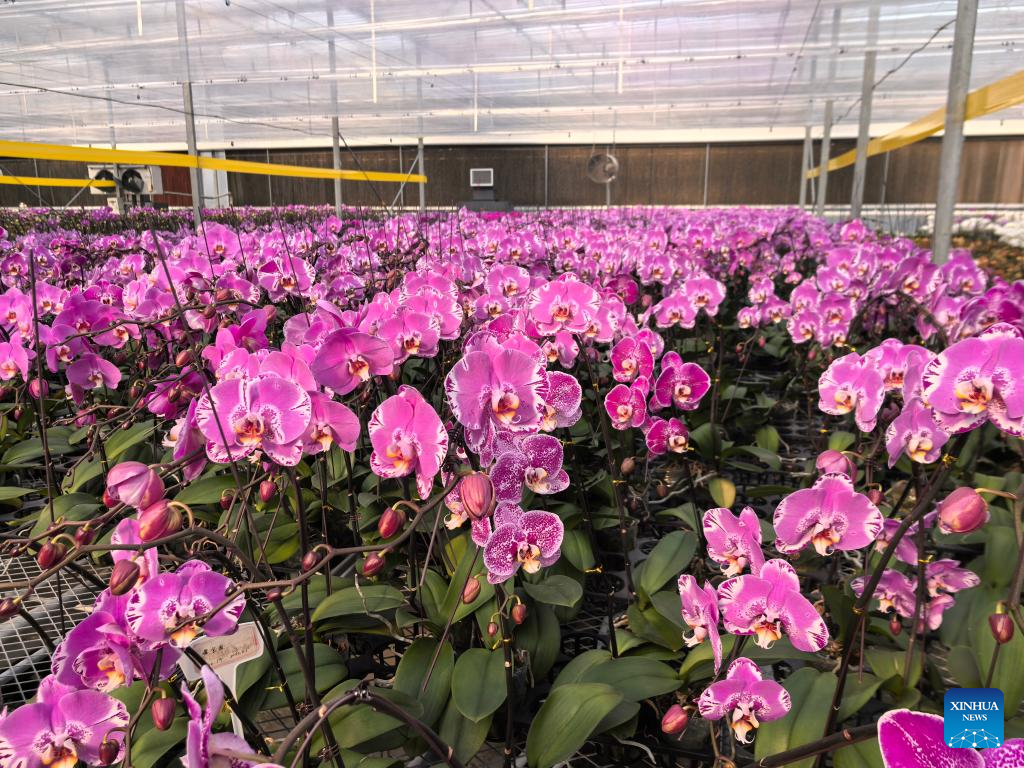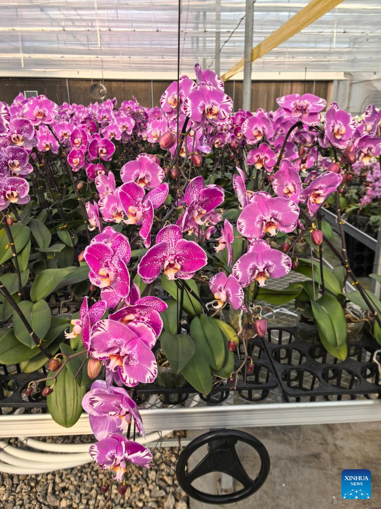 This photo taken on Jan. 20, 2026 shows Phalaenopsis orchids growing at a greenhouse in Niuzhuang Township, Dongying District of Dongying City, east China's Shandong Province. (Xinhua/Yuan Min)