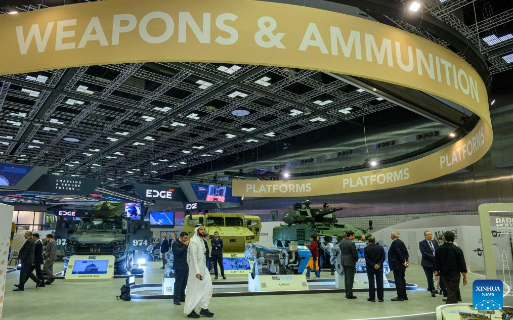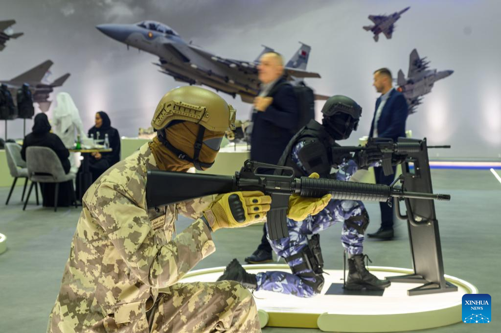 People visit the ninth edition of the Doha International Maritime Defence Exhibition & Conference (DIMDEX 2026) at the Qatar National Convention Centre in Doha, Qatar, on Jan. 19, 2026. The exhibition is being held from Jan. 19 to 22. (Photo by Nikku/Xinhua)