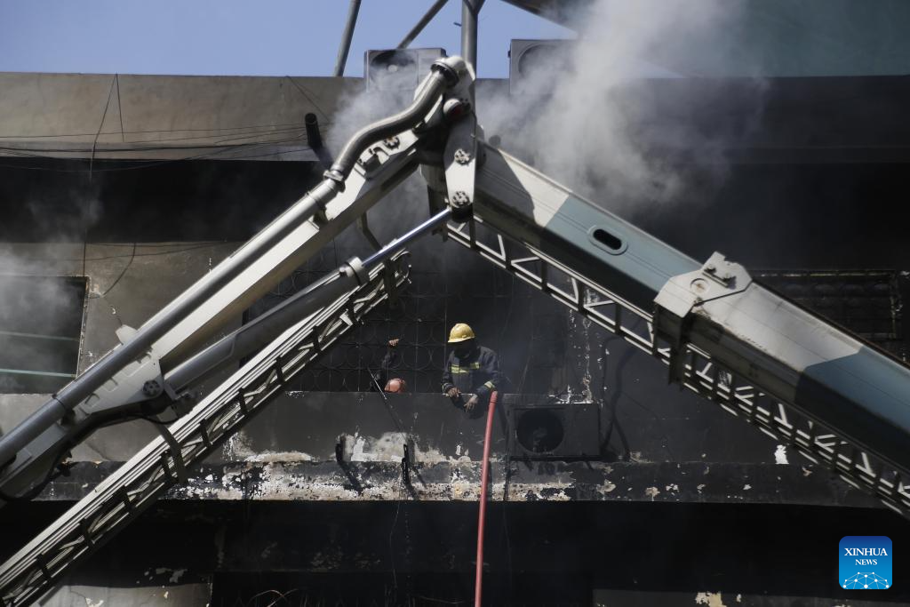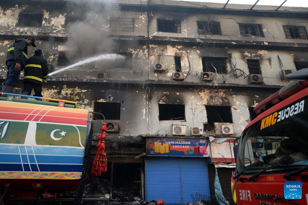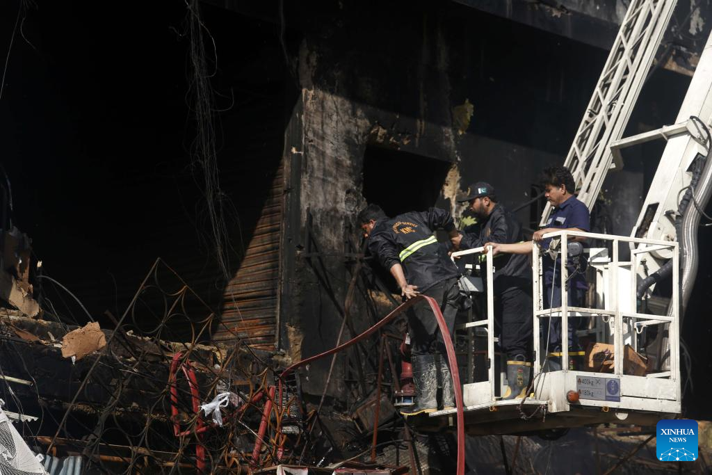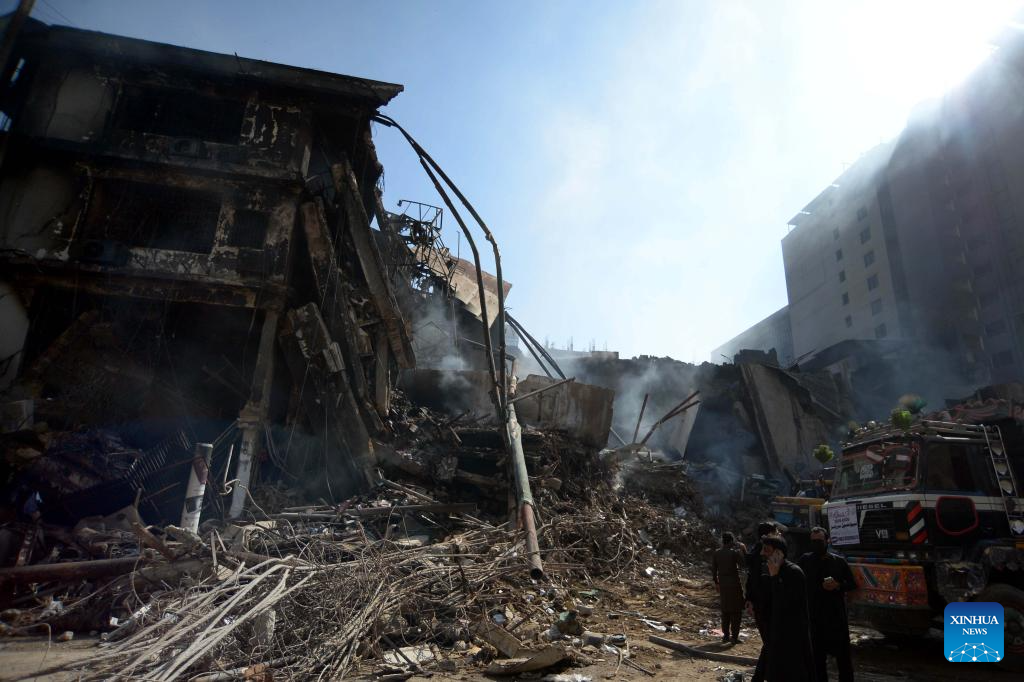 The fire has caused an estimated 100 billion Pakistani rupees (about 360 million U.S. dollars) in economic losses. The blaze, which started on Saturday night, engulfed the entire building.