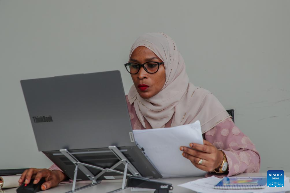 Amina works at her office in Dar es Salaam, Tanzania, Jan 15, 2026. (Xinhua/Emmanuel Herman)
