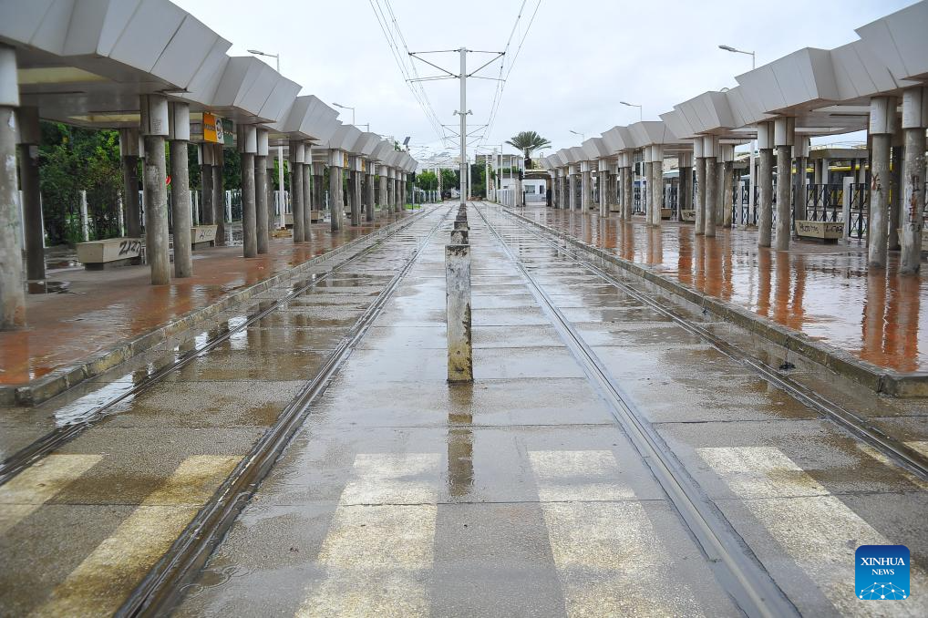 Services at a rail transit station are suspended due to heavy rainfall in Tunis, Tunisia, Jan. 20, 2026. At least four people have been killed in Tunisia as the heaviest rainfall since 1950 caused flooding in the country, the state-run Tunis Afrique Presse (TAP) reported Tuesday. (Photo by Adel Ezzine/Xinhua)