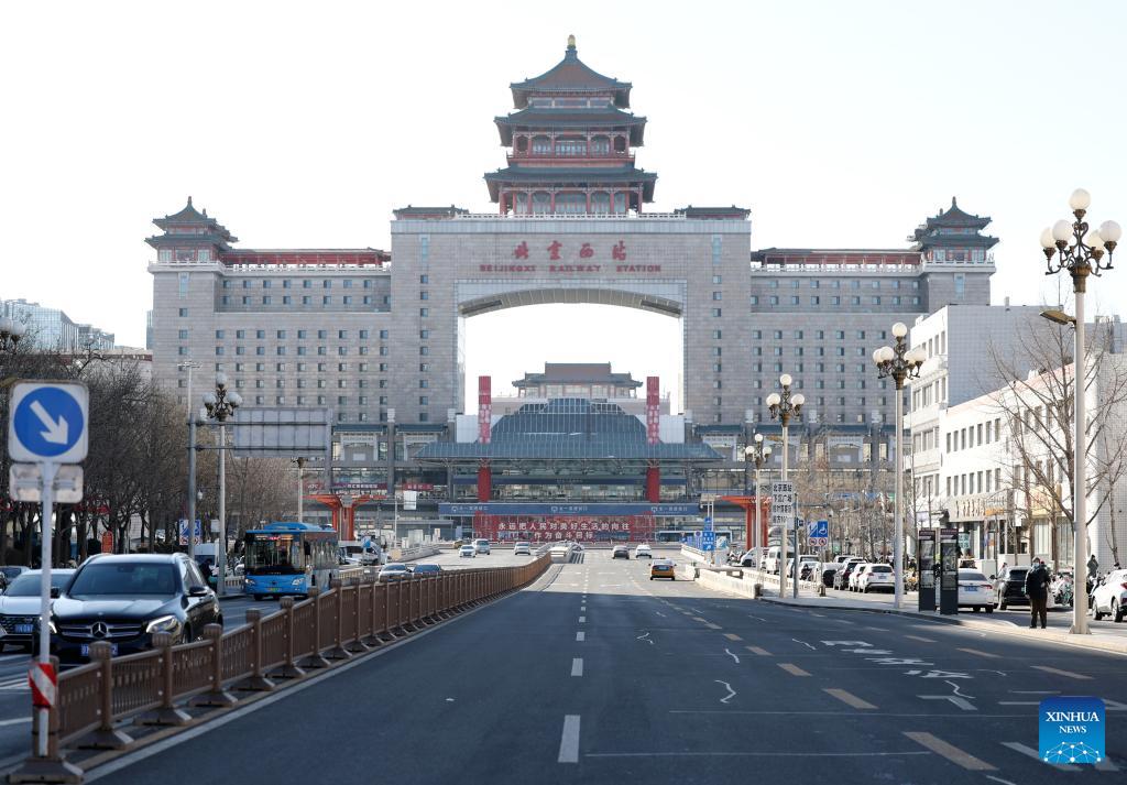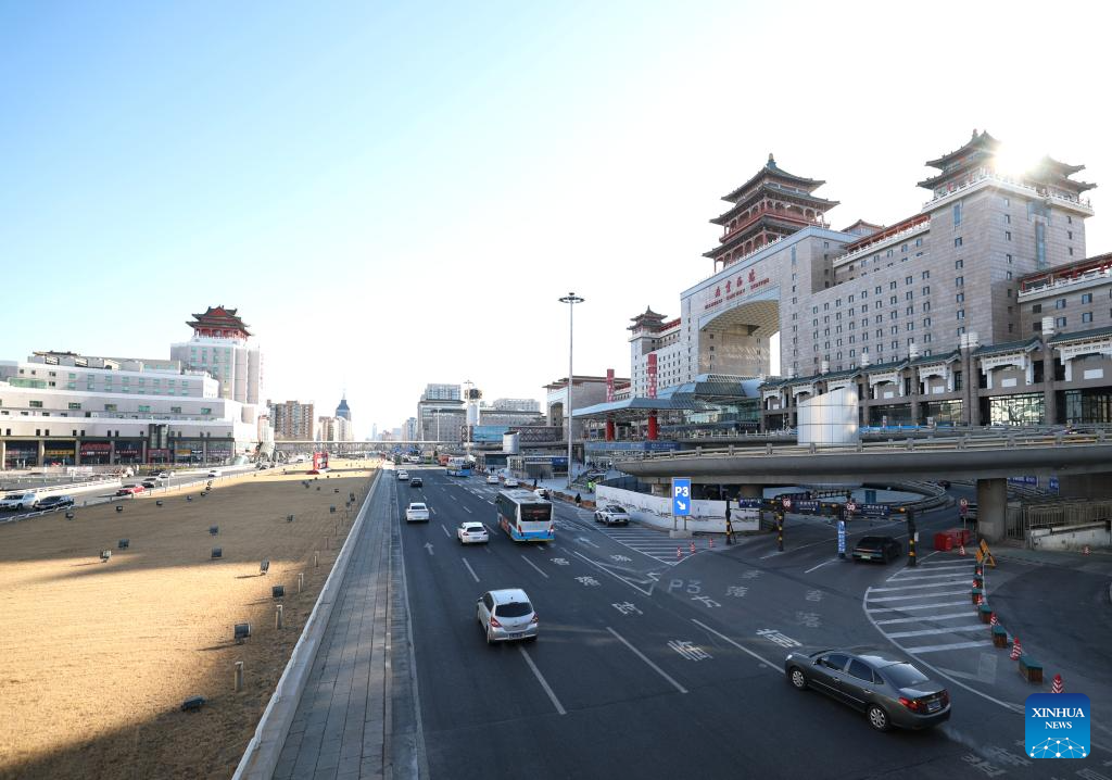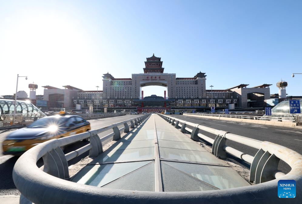 This photo taken on Jan. 21, 2026 shows an exterior view of the Beijing West Railway Station and its surrounding areas in Beijing, capital of China. The Beijing West Railway Station marked its 30th anniversary on Wednesday. Over the past three decades, this modern transport hub has handled more than 1.96 billion passenger trips, standing as a witness to China's development and the evolution of its railway network. (Xinhua/Zhang Chenlin)