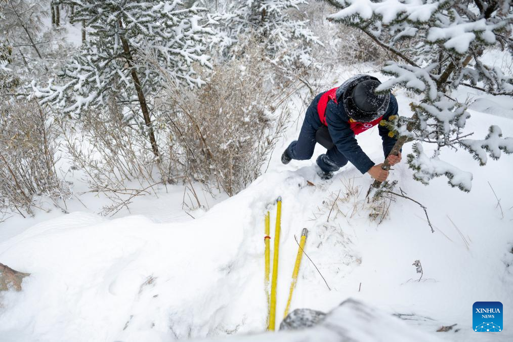 Workers patrol for power supply problems in Muyu Town, Shennongjia Forestry District of central China's Hubei Province, Jan. 21, 2026. Facing widespread low-temperature with severe icing on power lines in some high-altitude areas in Hubei Province, power maintenance staff conducted patrols to ensure the stable operation of the power grid. (Xinhua/Du Zixuan)
