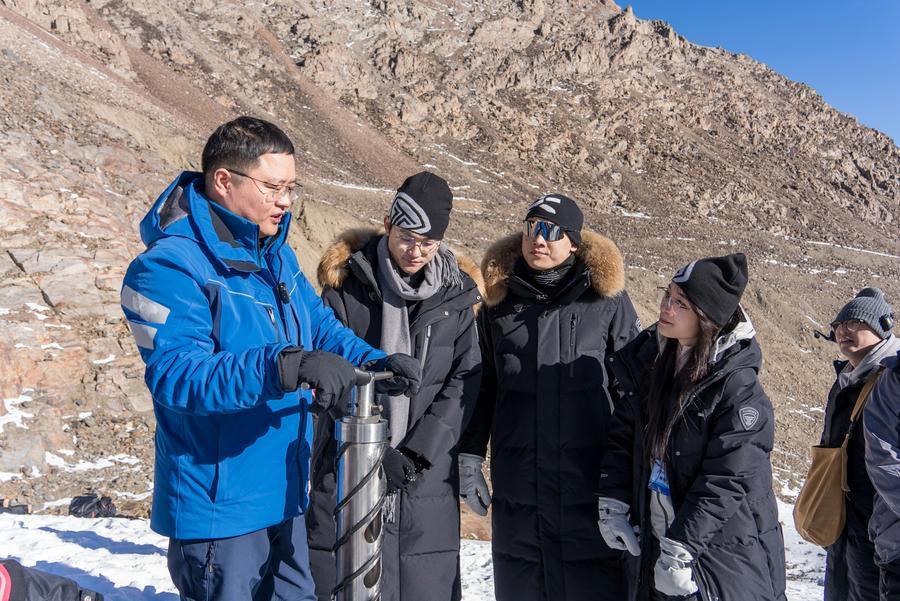 URUMQI, Jan. 21 (Xinhua) -- For me, the most unforgettable experience of 2025, a year that ranked among the hottest on record, was climbing on a nearly 4,000-meter-high glacier in northwest China, alongside a group of young explorers in late December. Standing on that vast expanse of ice, with a drone hovering above for video, we shouted a pledge into the thin, frigid air: "Protect glaciers, and keep Earth cool."