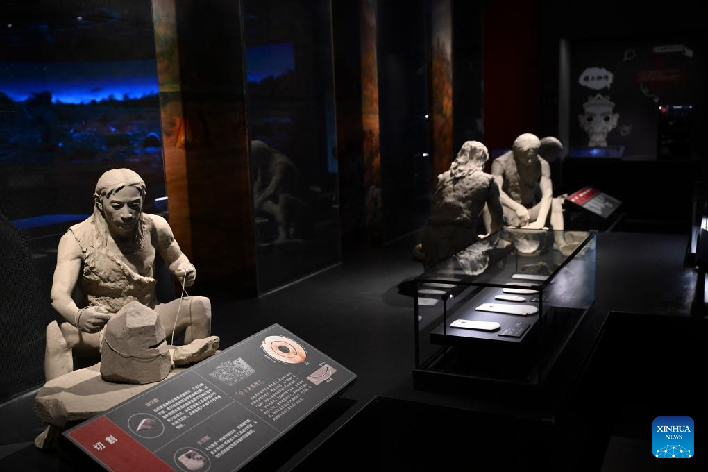 This photo taken on Dec. 24, 2025 shows a reconstructed scene of the ancient people making jade artifacts at the Lingjiatan Site Museum in Hanshan County, Ma'anshan, east China's Anhui Province. Dating back some 5,300 to 5,800 years, the Lingjiatan relic site in east China's Anhui was discovered in 1985. It is known for the jadeware unearthed there. The findings include jade artifacts in various shapes, offering a peek into the spirits and aesthetics of a prehistoric Chinese jade culture. (Xinhua/Huang Bohan)