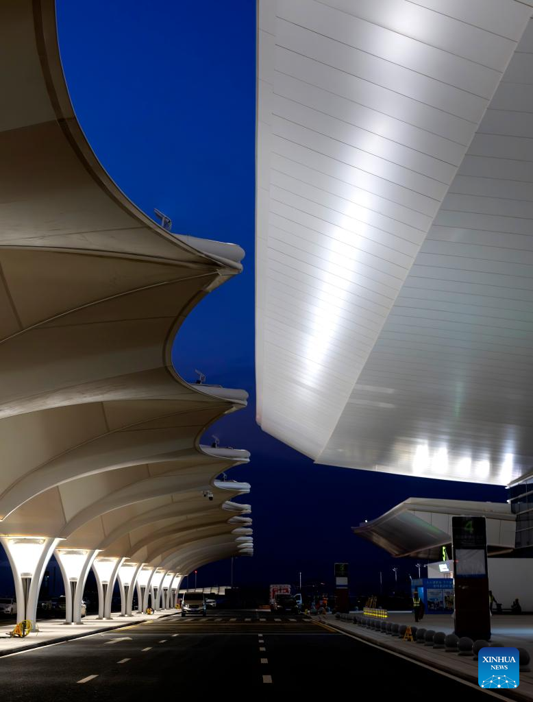 This photo taken on Jan. 20, 2026 shows an exterior view of the departure hall of the Xiamen Xiang'an International Airport in Xiamen, southeast China's Fujian Province. Construction of the Xiamen Xiang'an International Airport has entered a critical phase involving completion acceptance, flight tests and calibrations, and relocation preparations. With its operation slated for late 2026, the airport will be able to handle 45 million passengers, 750,000 tonnes of cargo and mail, as well as 380,000 aircraft take-offs and landings on a yearly basis. (Xinhua/Wei Peiquan)