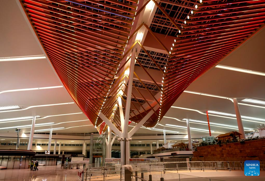 This photo taken on Jan. 20, 2026 shows the departure hall of the Xiamen Xiang'an International Airport in Xiamen, southeast China's Fujian Province. Construction of the Xiamen Xiang'an International Airport has entered a critical phase involving completion acceptance, flight tests and calibrations, and relocation preparations. With its operation slated for late 2026, the airport will be able to handle 45 million passengers, 750,000 tonnes of cargo and mail, as well as 380,000 aircraft take-offs and landings on a yearly basis. (Xinhua/Wei Peiquan)