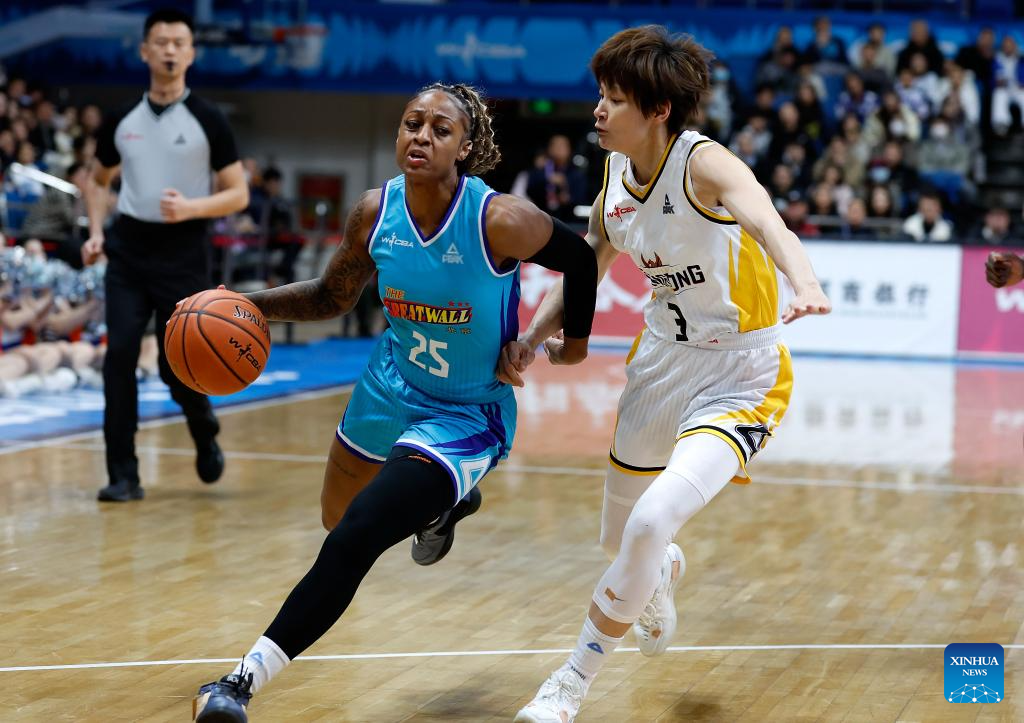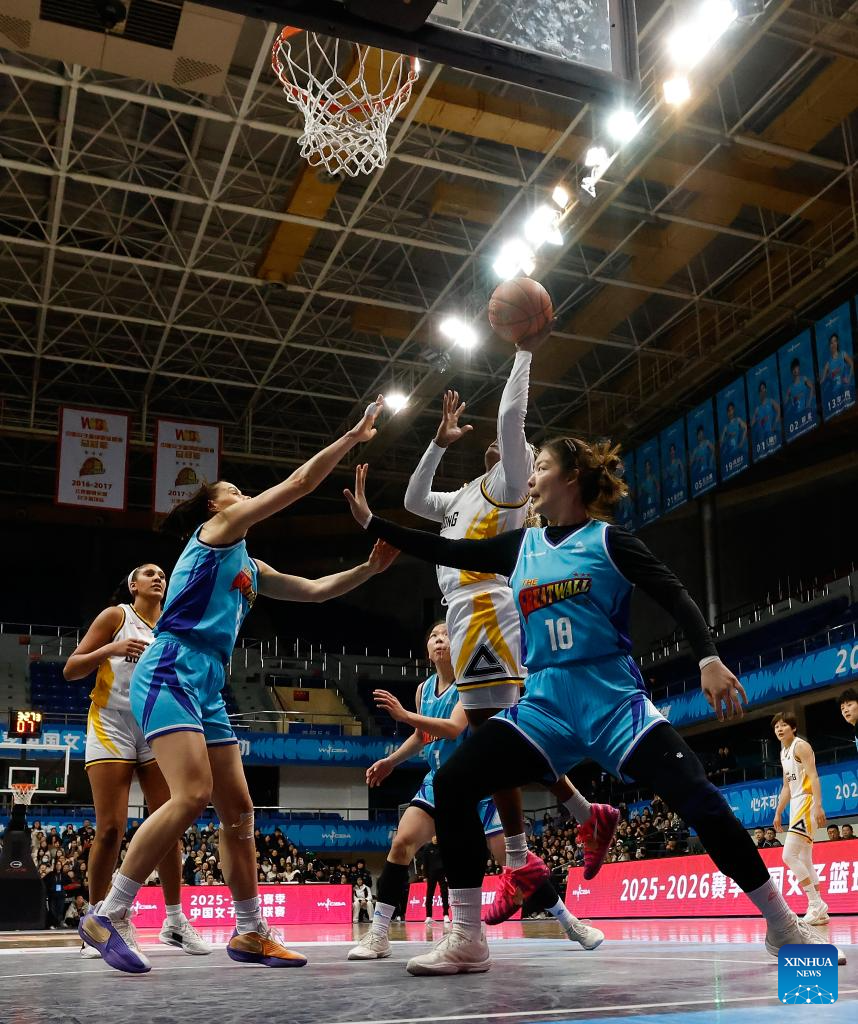 Tiffany Mitchell of Beijing Great Wall breaks through during the 18th round regular season match between Beijing Great Wall and Guangdong Vermilion Birds at the 2025-2026 Women's Chinese Basketball Association (WCBA) league in Beijing, China, Jan. 20, 2026. (Xinhua/Wang Lili)