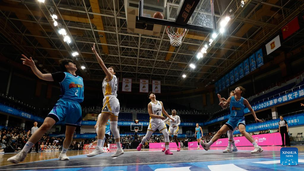 Zheng Ming (1st L) of Beijing Great Wall shoots during the 18th round regular season match between Beijing Great Wall and Guangdong Vermilion Birds at the 2025-2026 Women's Chinese Basketball Association (WCBA) league in Beijing, China, Jan. 20, 2026. (Xinhua/Wang Lili)