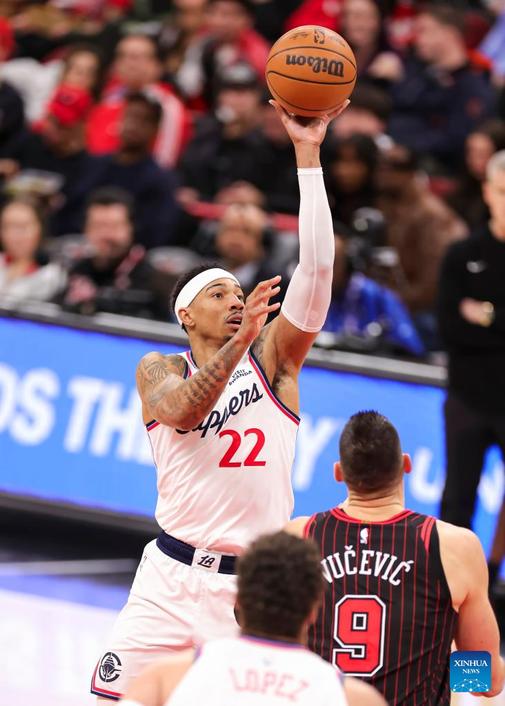 Los Angeles Clippers' Jordan Miller shoots during the 2025-2026 NBA regular season basketball game between Los Angeles Clippers and Chicago Bulls at United Center in Chicago, the United States, Jan. 20, 2026. (Photo by Joel Lerner/Xinhua)