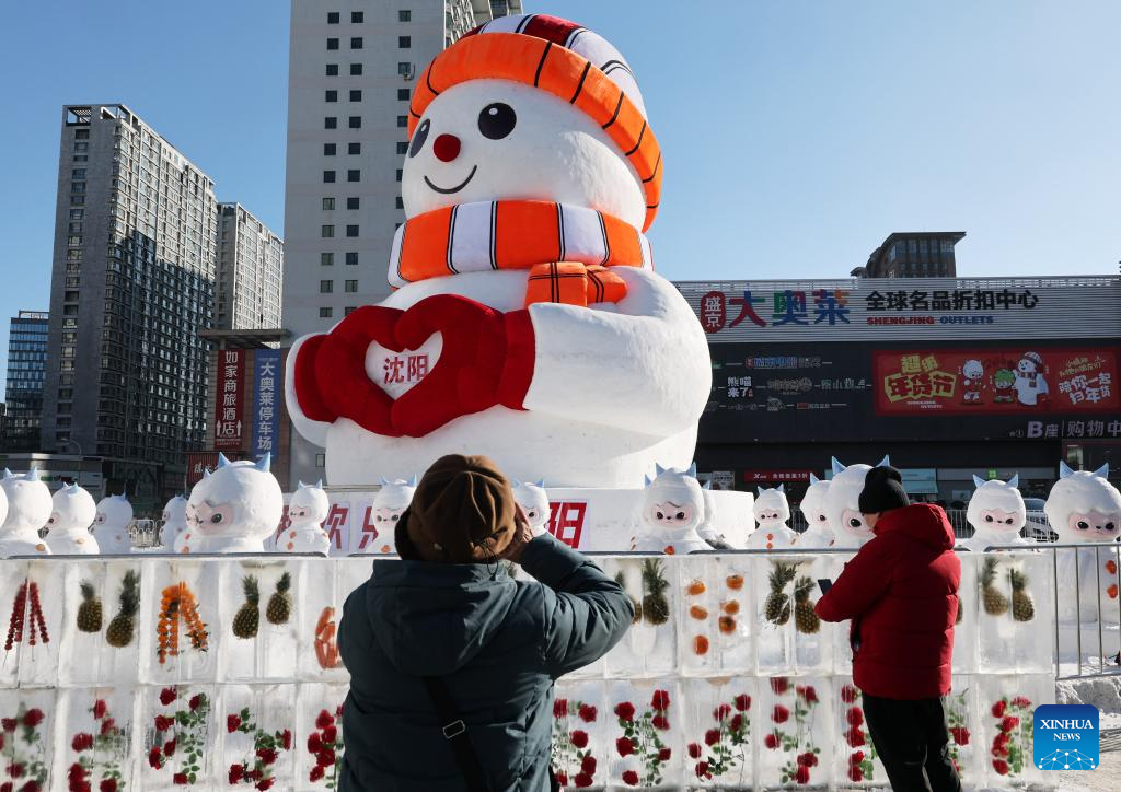 Giant snowmen are seen at the Shenyang Railway Station in Shenyang, northeast China's Liaoning Province, Jan. 22, 2026. (Xinhua/Li Gang)