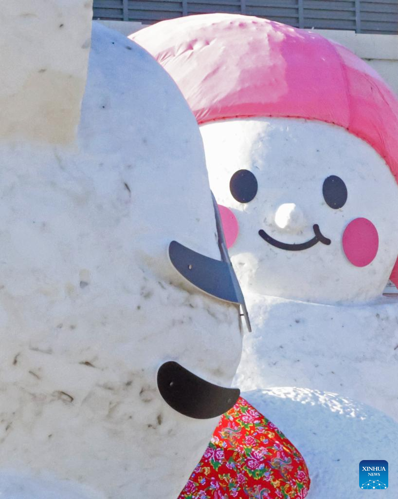 Giant snowmen are seen at the Shenyang Railway Station in Shenyang, northeast China's Liaoning Province, Jan. 22, 2026. (Xinhua/Han He)