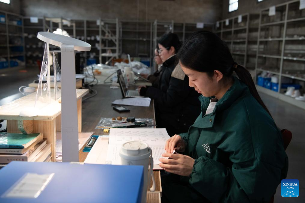 Archaeologists work at the research station of the Lingjiatan relics site in Hanshan County, Ma'anshan, east China's Anhui Province, Dec. 24, 2025. The Lingjiatan relics site in east China's Anhui is a Neolithic settlement dating back 5,300 to 5,800 years, with an area of about 1.6 million square meters.