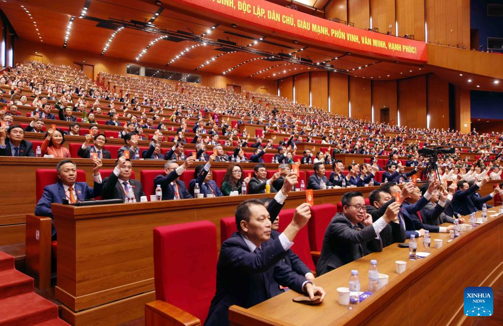 This photo taken on Jan. 21, 2026 shows a scene during a session of the 14th National Congress of the Communist Party of Vietnam at the National Convention Center in Hanoi, Vietnam. The ongoing 14th National Congress of the Communist Party of Vietnam (CPV) on Thursday elected the party's 14th central committee. (VNA via Xinhua)