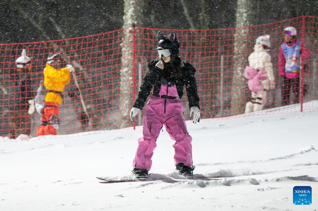 Tourists ski at a ski resort in Shennongjia Forestry District, central China's Hubei Province, Jan. 20, 2026. In recent years, Hubei Province has leveraged its strategic location as a transportation hub connecting nine provinces, tapping into its unique ice and snow resources to vigorously develop the ice and snow tourism industry. Multiple locations in Hubei have become well-known ice and snow tourism destinations, attracting numerous tourists to experience the joys of winter sports. (Xinhua/Du Zixuan)