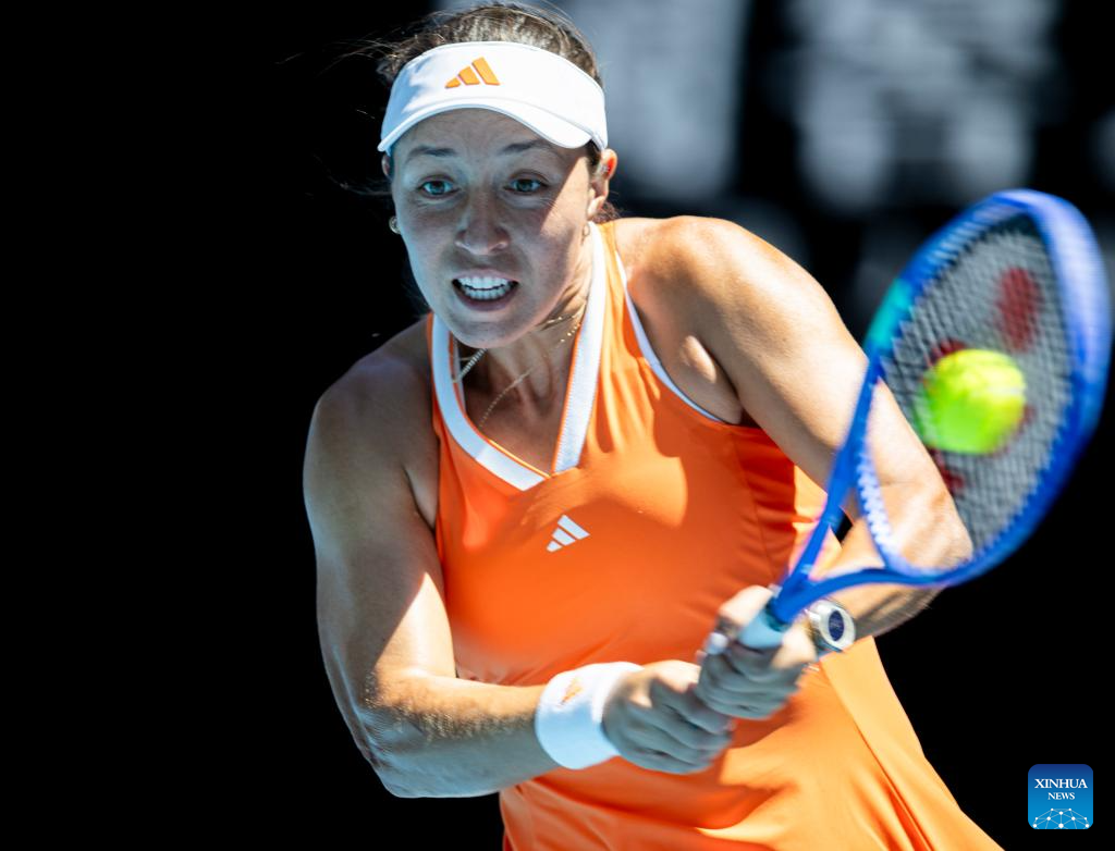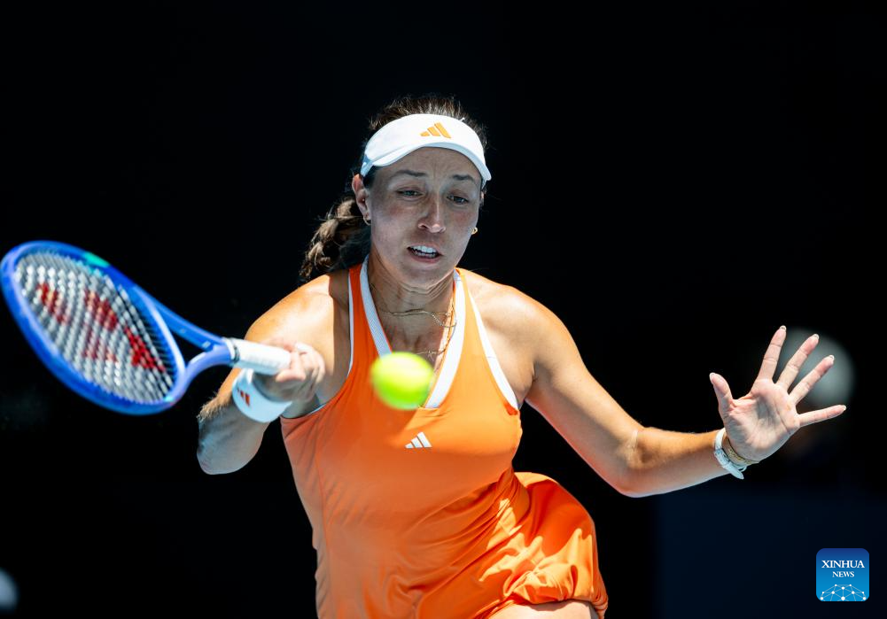 Jessica Pegula of the United States hits a return during the women's singles 2nd round match against McCartney Kessler of the United State at the Australian Open tennis tournament in Melbourne, Australia, Jan. 22, 2026. (Photo by Hu Jingchen/Xinhua)