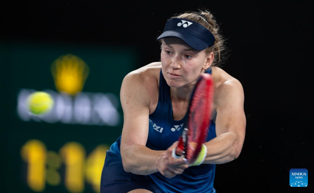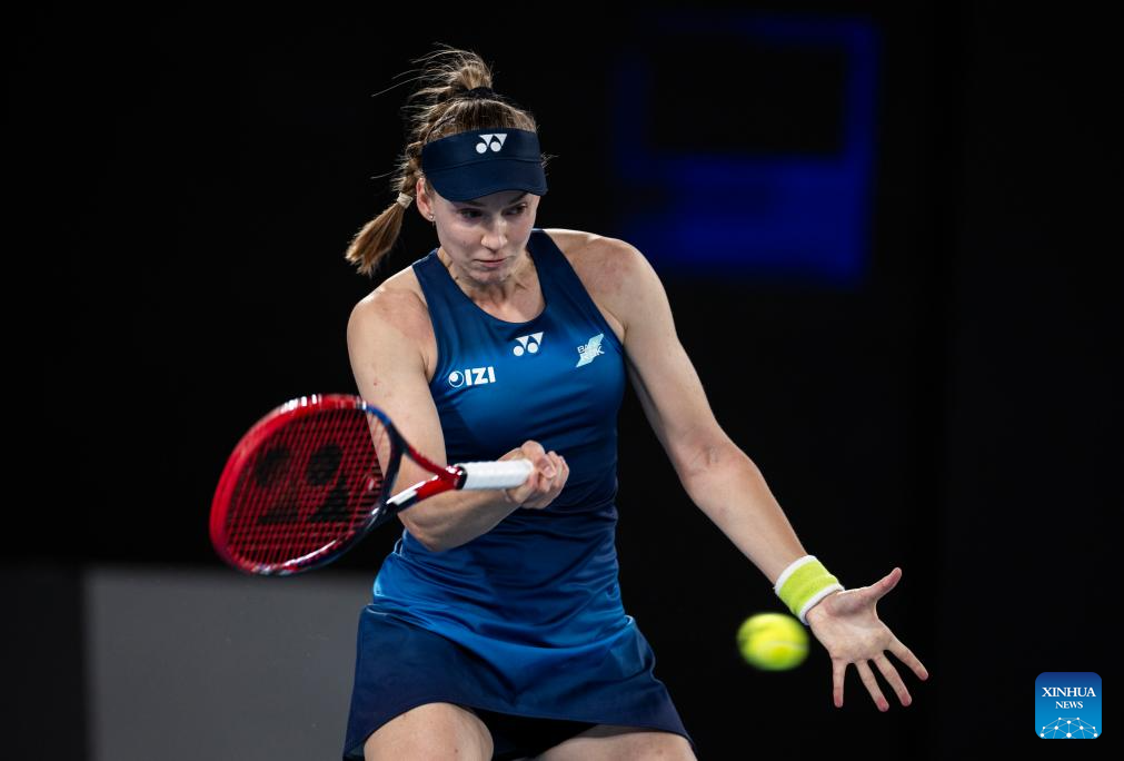 Elena Rybakina of Kazakhstan hits a return during the women's singles 2nd round match between Elena Rybakina of Kazakhstan and Varvara Gracheva of France at the Australian Open tennis tournament in Melbourne, Australia, Jan. 22, 2026. (Photo by Hu Jingchen/Xinhua)